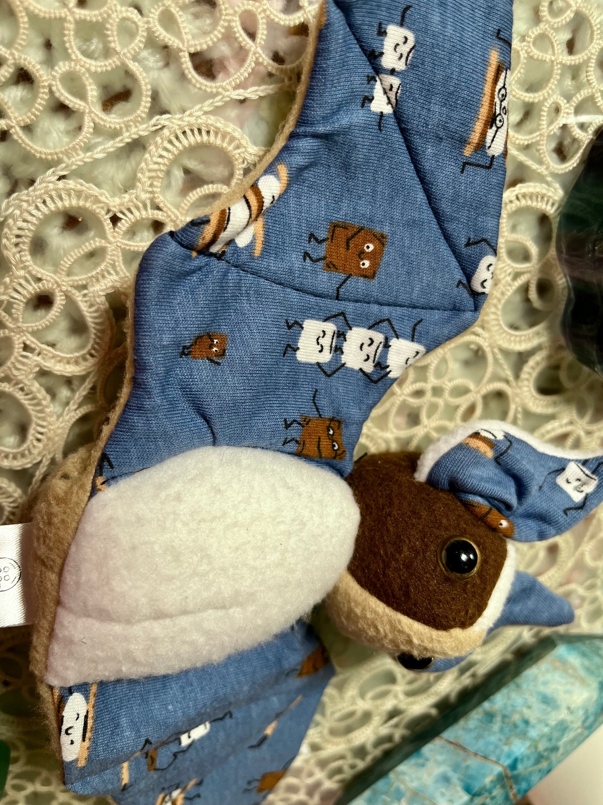 Crafted from multiple types of soft, high-quality fleeces this bat plushie is not only incredibly cuddly but also durable and long-lasting. The attention to detail in the design of the bat's wings and facial features make it look like it could fly away at any moment. One wing includes crinkle material giving it a unique texture and sound. Great for babies or those with sensory needs.