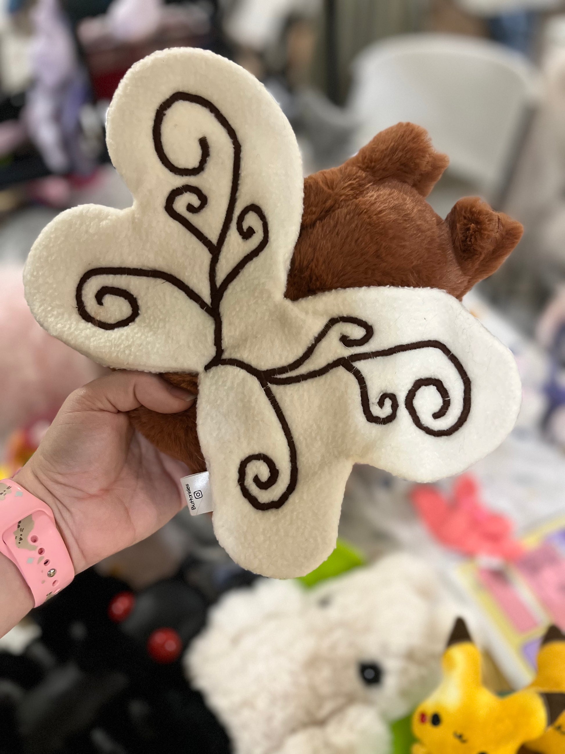 Discover the enchanting beauty of nature with this carefully crafted moth plush. Each piece features premium fleece complemented by delicate machine embroidery details. At 9 inches tall, this moth makes a perfect decorative accent or cuddly companion.